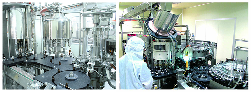 于100000級無塵室進行無菌配比,并經超高溫瞬間滅菌系統進行產品穩定化,運用全自動三級一體的充填封蓋系統結合臭氧純水,全程于無塵室進行高速充填,全面依據食品GMP規范進行生產。